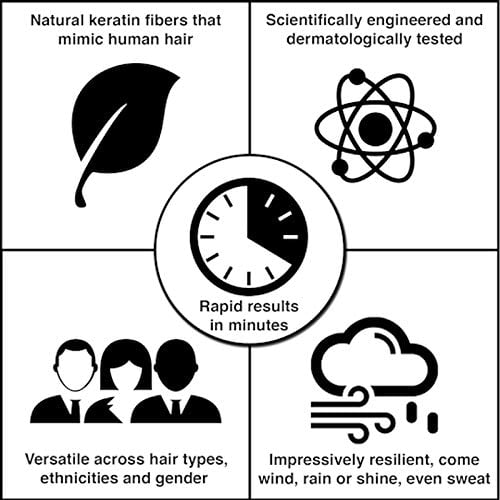CUVVA Hair Building Fibers are made from high-quality, natural keratin protein — the same protein found in real human hair. These protein fibres carry a natural static charge. Once sprinkled into your hair, the static enables them to resiliently, but undetectably, cling and blend to even the tiniest hair strands. The result — a seemingly full head of thick hair, with impressive staying power, come wind, rain or shine.